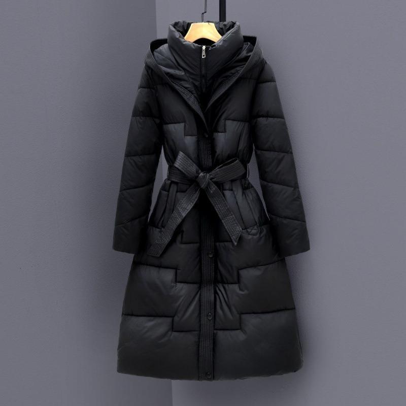 Winter new thickened knee long thickened cotton clothes warm jacket waist thin jacket large size