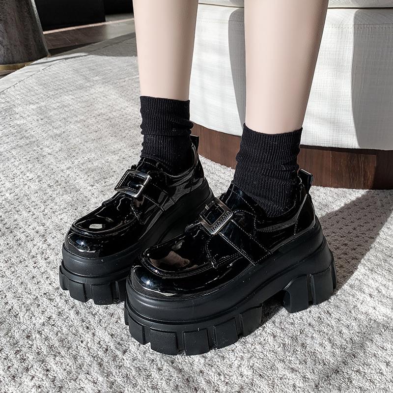 Fashion Spring Summer British Walker Shoes Women Patent Leather Platform Shoes High Platform Chunky Heel Pumps 9 cm zapatos de mujer