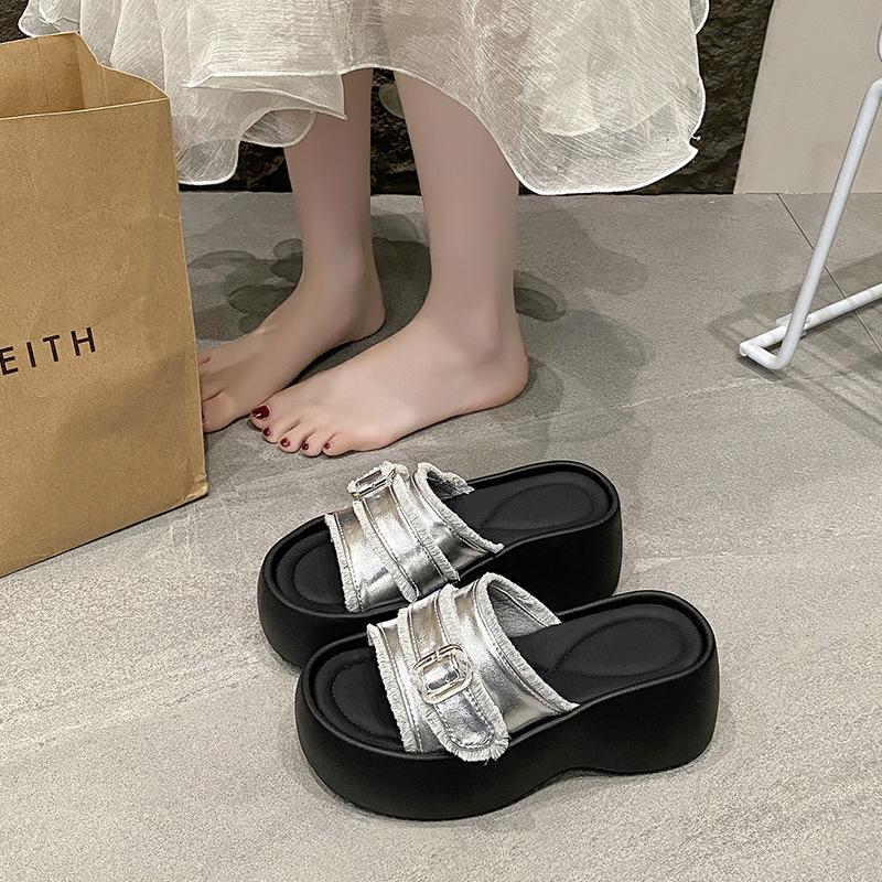 French fairy style thick-bottomed cool slippers female summer fashion with skirt temperament 2025 new versatile Roman cool slippers