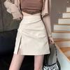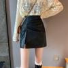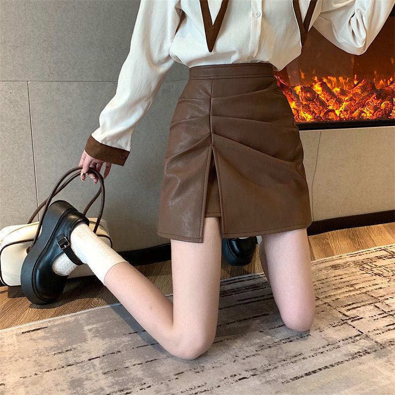 Women's High Waist Slit Pleated PU Mini Skirt - Slimming A-Line, Anti-Exposure, Hip-Hugging