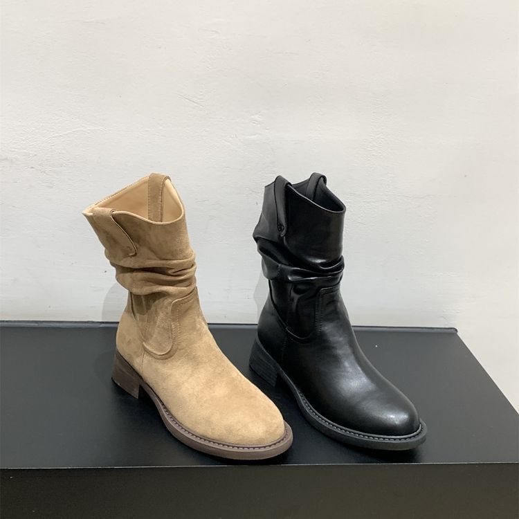 Autumn and winter new thick heel medium tube stacking boots women's fashion versatile and comfortable height-increasing Martin boots women