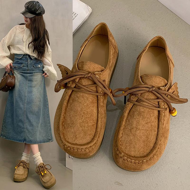 Μοντέρνα παπούτσια καγκουρό γυναικεία φθινοπωρινά νέα ρετρό ευέλικτα τεμπέλικα ρηχό στόμα casual loafers