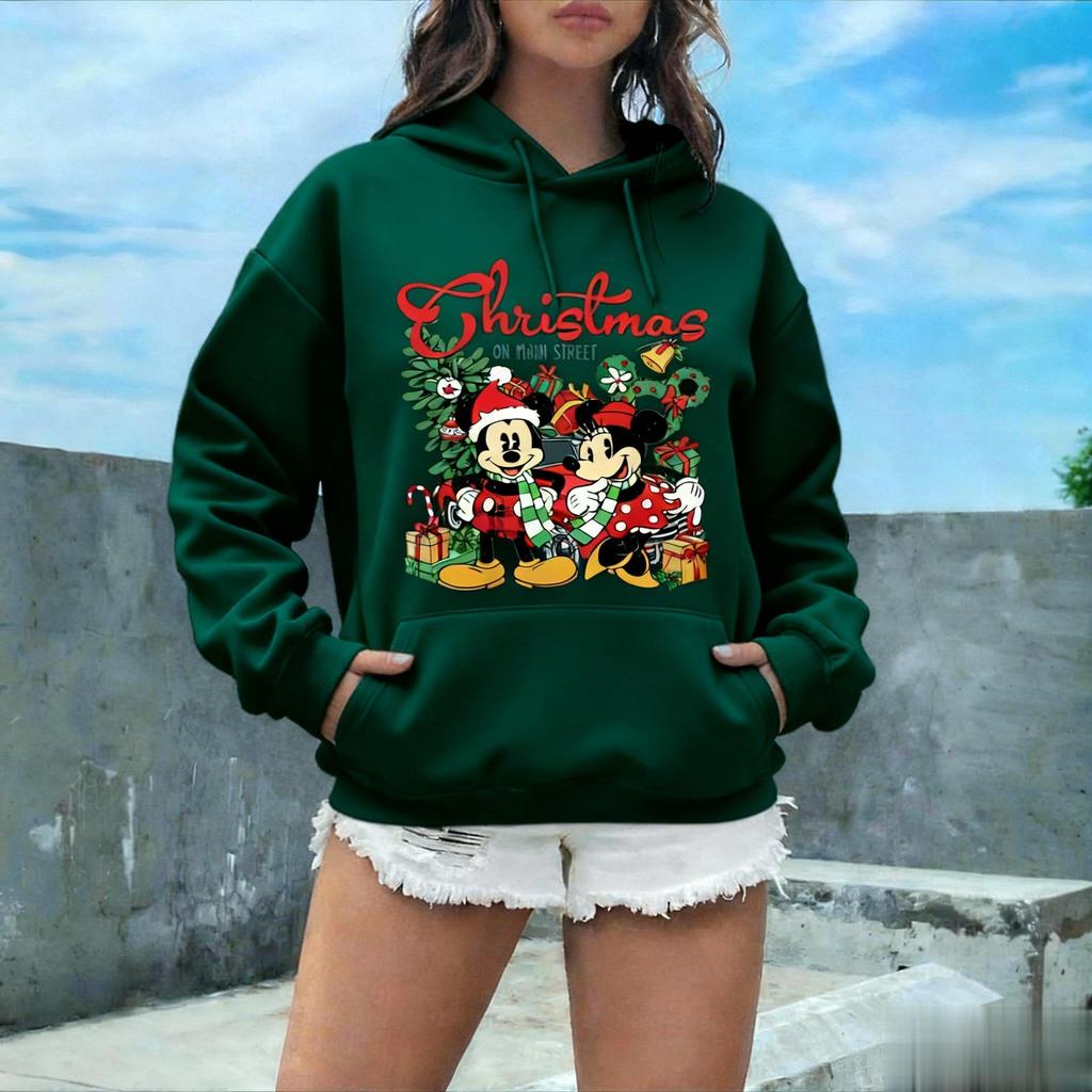 Unisex Christmas Mickey Minnie Print Sweatshirt Women Men Hoodie Graphic Pullover Casual Streetwear Sweater Autumn Winter Disney