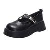 Mary Jane shoes women's autumn new shallow mouth one-word buckle belt platform middle heel British style small leather shoes women
