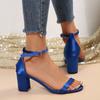High heels women's summer new square head thick heel open toe one-word buckle belt hollow versatile fairy nude sandals