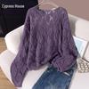 Sibaisha Women's Hollow Out Long Sleeve Knit Top