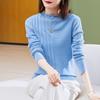 TUHUANG Women's Pure Wool Half-High Collar Ribbed Knit Sweater
