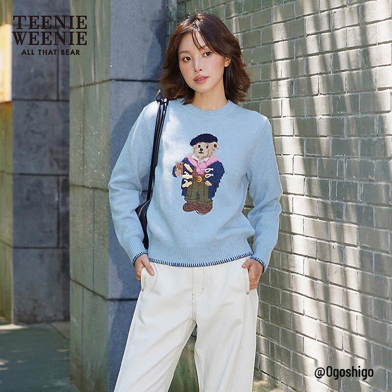 Teenie Weenie Women's Bear Graphic Round Neck Pullover Sweater