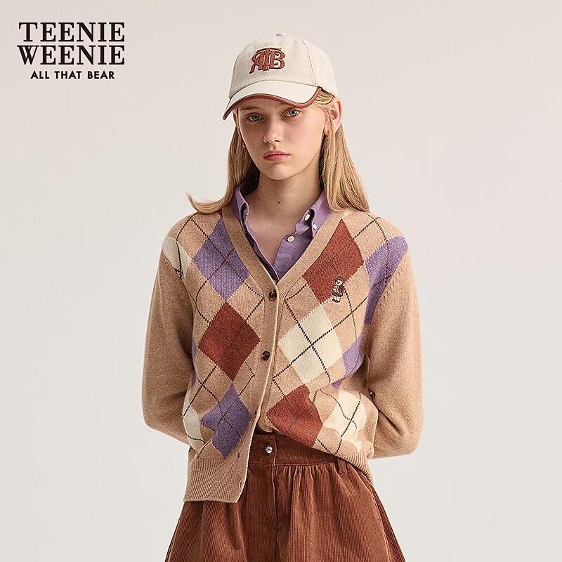Teenie Weenie Women's Retro Argyle V-Neck Knit Cardigan