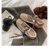 Grape mother of the same style, fashionable retro contrasting color, round square head, casual style, genuine leather, Agande training board shoes