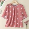 ZANZEA Γυναικείο Καθημερινό Καλοκαιρινό Μπλουζάκι με Στρογγυλή Λαιμόκοψη, Κοντό Μανίκι και Πουά