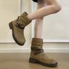 Korean version belt buckle short boots women's 2025 autumn new versatile flat bottom thin pile boots British style thin velvet boots women