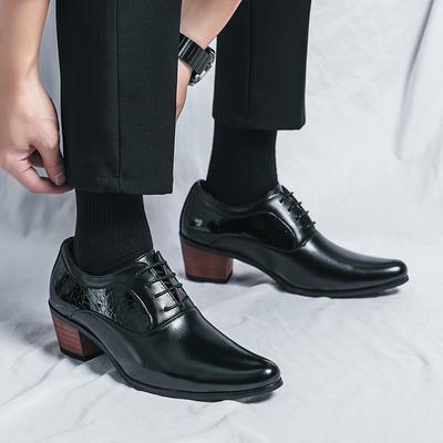 Classic Pointed Toe Male Casual Footwear High Heels Men Shoe Male Lace-Up Oxfords Shoes 2024 Leather High Heels Men Club Shoes