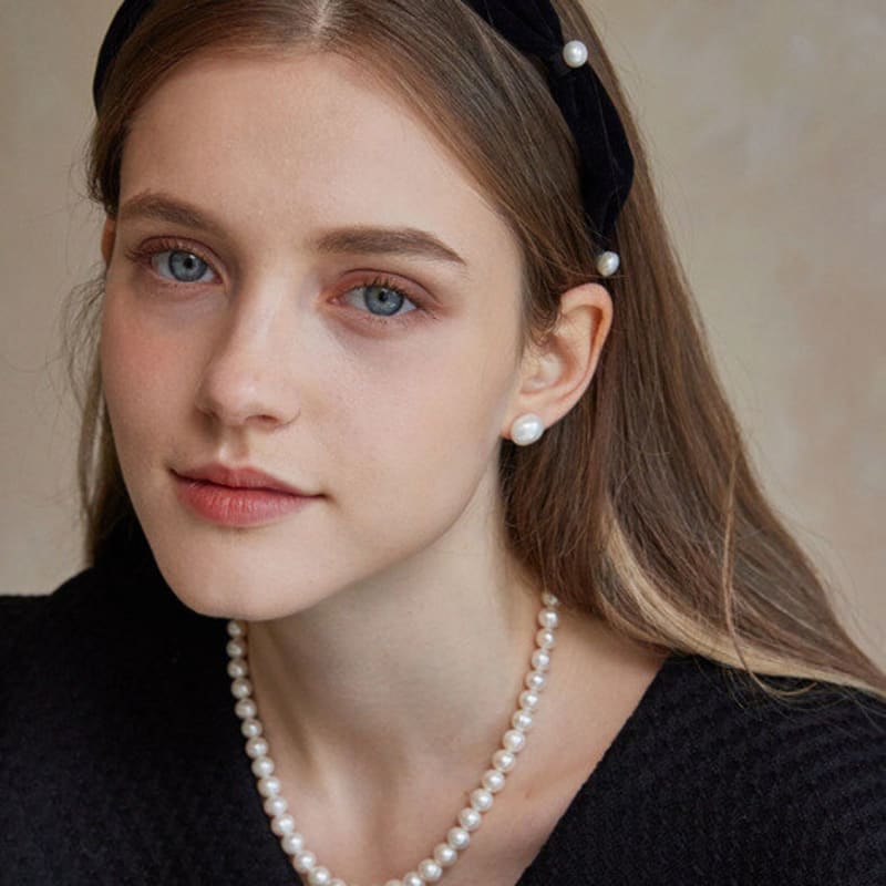 of Lavishe Olivia Suede Velvet Fresh Water Pearl Headband