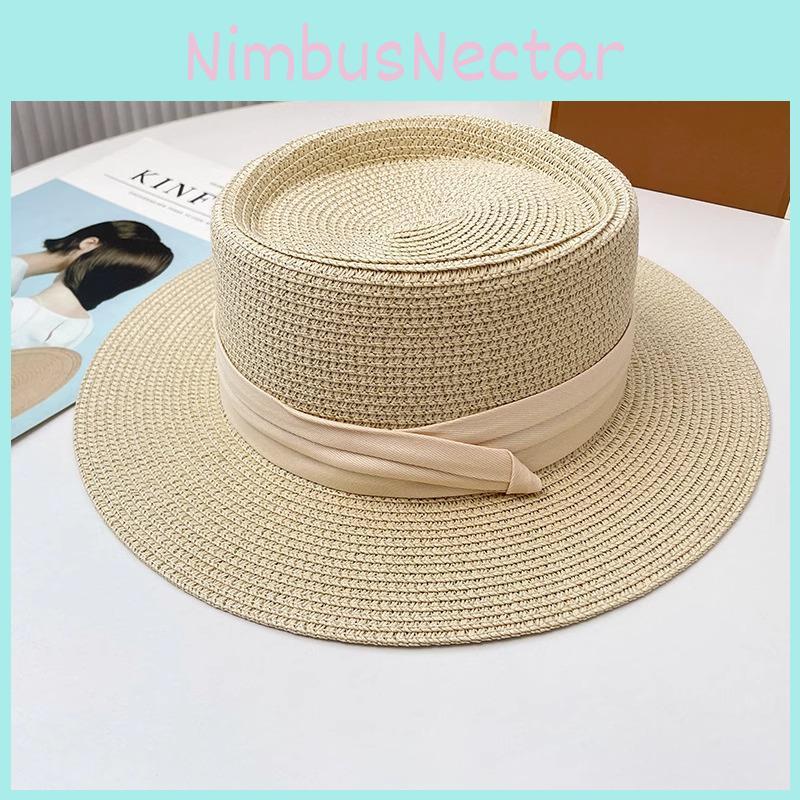 This sun protection hat features a flat-top straw design with a wide brim, delivering effective shade and UV resistance. Made of durable polyester fiber, it measures 22 inches in circumference size M: 56-58cm and combines lightweight comfort with stylish woven craftsmanship. Suitable for outdoor beach trips, picnics, or strolls, it offers wind resistance and easy maintenance with a simple wipe clean.