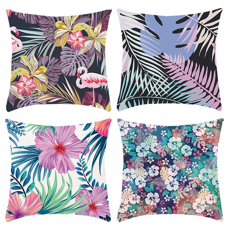 New Colorful Tropical Plant Print Flower Print Cushion Home Sofa Cushion Cover