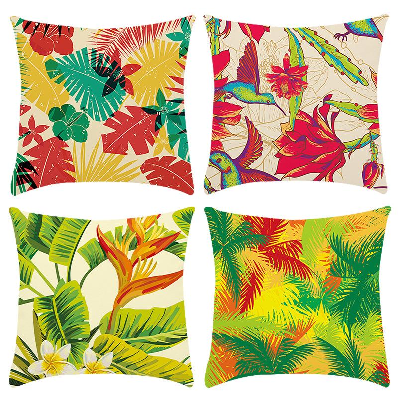 New Green Plant Tropical Plant Flower Print Cushion Home Sofa Cushion Cover