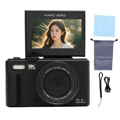 4K Digital Camera 75MP UHD 3 Inch LCD Screen 18X Digital Zoom WiFi Digital Video Camera with Flash for Photography