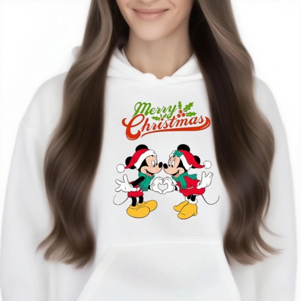 Disney Parent-child Christmas Mickey Mouse Printed Multi-color Hooded Sweatshirt, A Fashionable American Brand Casual Top