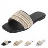 2025 summer new Korean version fashion square head flat bottom casual large size women's word with pearl cool slippers foreign trade