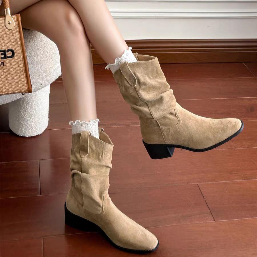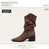 Lan Cabinet Edition~ Frosted Suede V-mouth Western Cowboy Boots Women's Retro Wind Middle Boots High Heel Sleeve Stacking Boots
