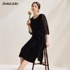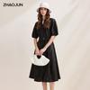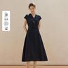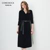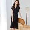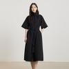 GOELIA Women's Black Mulberry Silk Tie-Waist Midi Dress