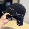 New Korean Style Knitted Bow Fisherman Hat for Women Versatile Face Showing Small Basin Hat Foldable Autumn and Winter Bucket Hat