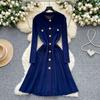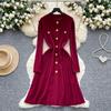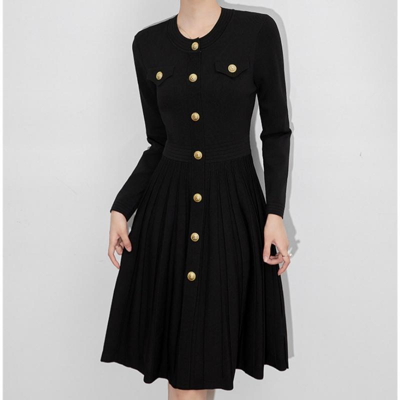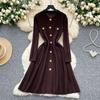 Autumn Winter High Waist Knitted Umbrella A-line Dresses 2025 New Buttons O-neck Long Sleeve Loose Sweater Dress Female