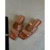 French thick heel square head half drag women's new summer wear retro and beautiful one-word drag Roman sandals are not tired