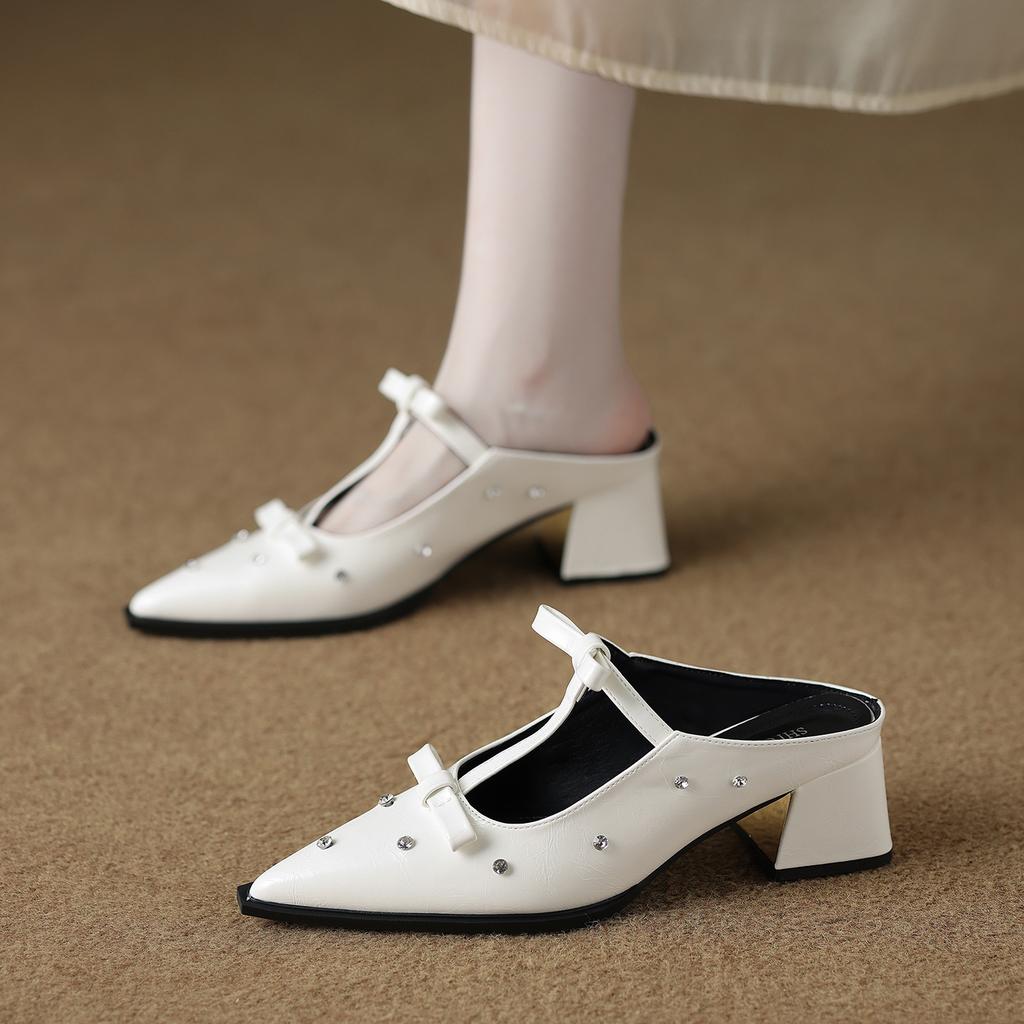 6001-9 High-heeled bag head half slippers women's summer wear light luxury Mary Jane temperament versatile pointed sandals