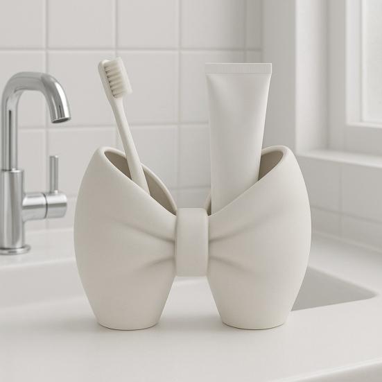 Bow Toothbrush Holder 3D Printed Pink White Bowknot Toothbrush Toothpaste Organizer Bathroom