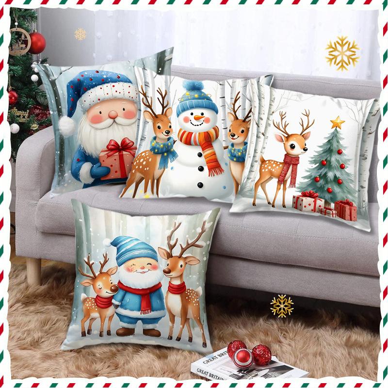 Χριστουγεννιάτικο Θέμα Κάλυμμα Μαξιλαριού Καναπέ Αυτοκινήτου Άγιος Βασίλης Άλκης Λινό Βελούδινο Κάλυμμα Μαξιλαριού με Εκτύπωση