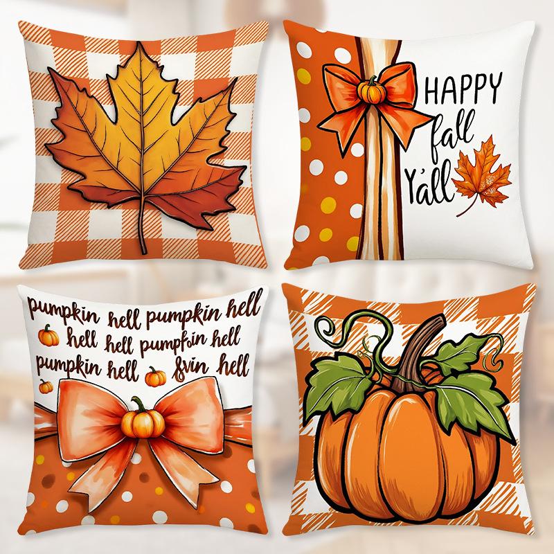 Thanksgiving Pumpkin Maple Leaf Element Letter Print Pillow Atmosphere Decoration Living Room Home Pillow Cushion Cover