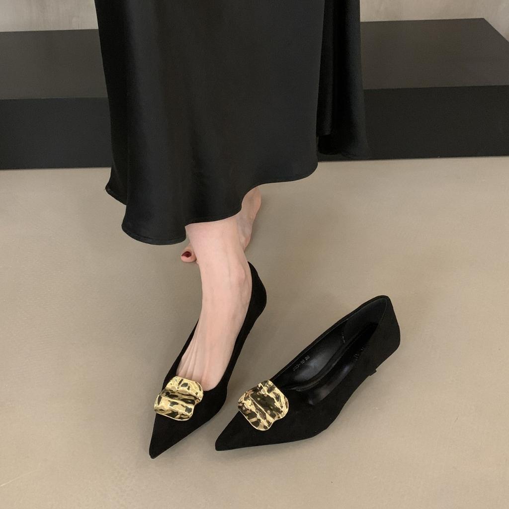 Γαλλικές μυτερές γόβες kitten heel με μεταλλική αγκράφα γυναικείες άνοιξη και φθινόπωρο 2025 νέα σεζόν στιλέτο σουέτ παπούτσια για την εργασία