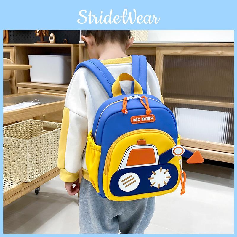 This childrens backpack features a cartoon excavator design, suitable for both boys and girls. Made of durable nylon with polyester lining, it measures approximately 22*10*25 cm, and offers breathable comfort for daily use. Ideal for preschool activities, it supports easy carrying and quick cleaning with a damp cloth.