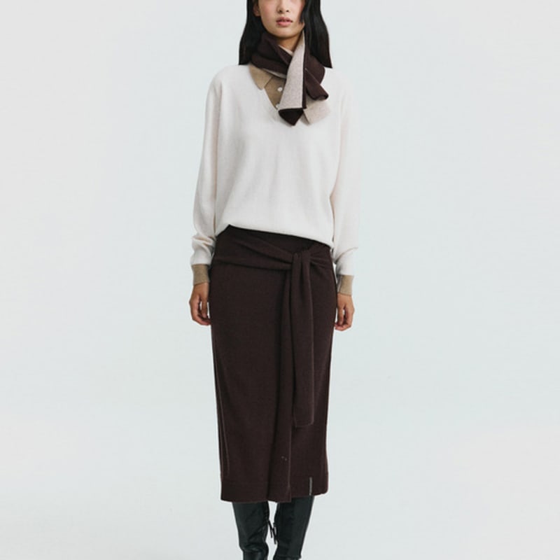 LE CASHMERE Cashmere Petit Muffler (Brown) D7AJW25002BRX