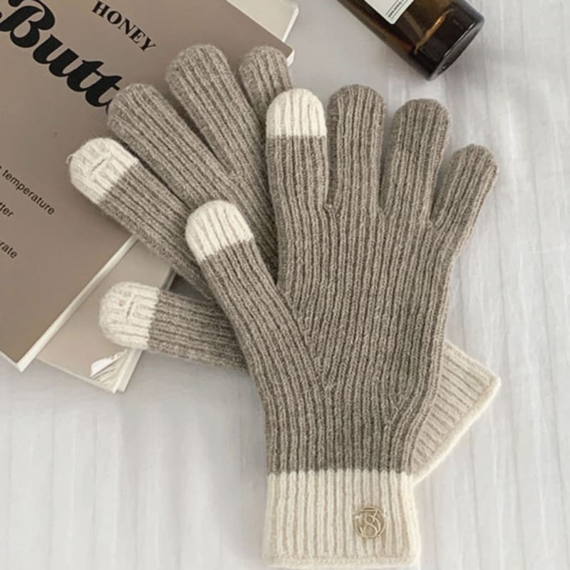 38comeoncommon Symbol fingerhole gloves (Melange Beige)