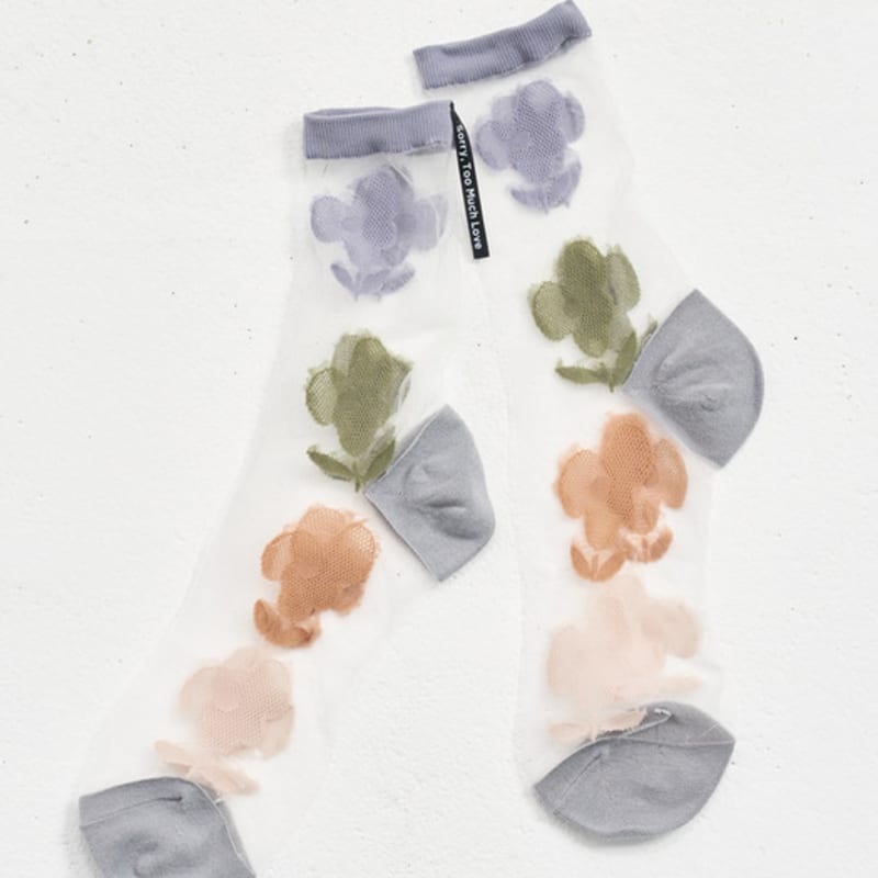 SORRY TOO MUCH LOVE SeeThrough Flower Socks_Gray