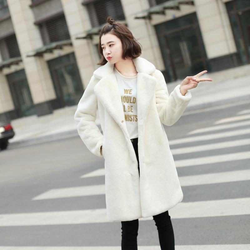 New imitation coat for women's autumn and winter long warm slim-fitting with cotton imitation wool imitation woolen coat imitation