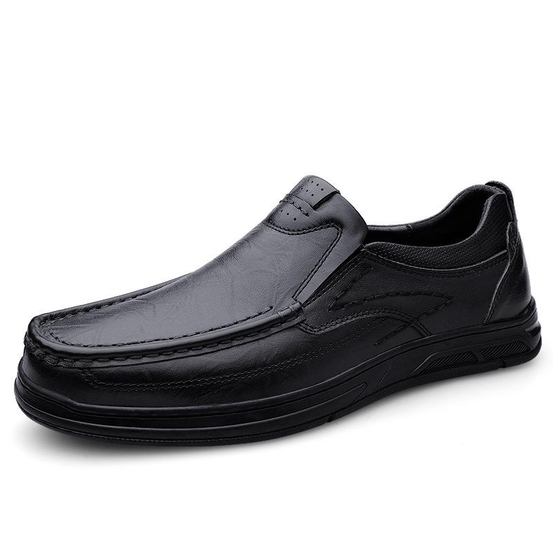 Leather shoes men's first-layer cowhide business casual loafers spring one-pedal lazy thick-soled round head foot men's leather shoes