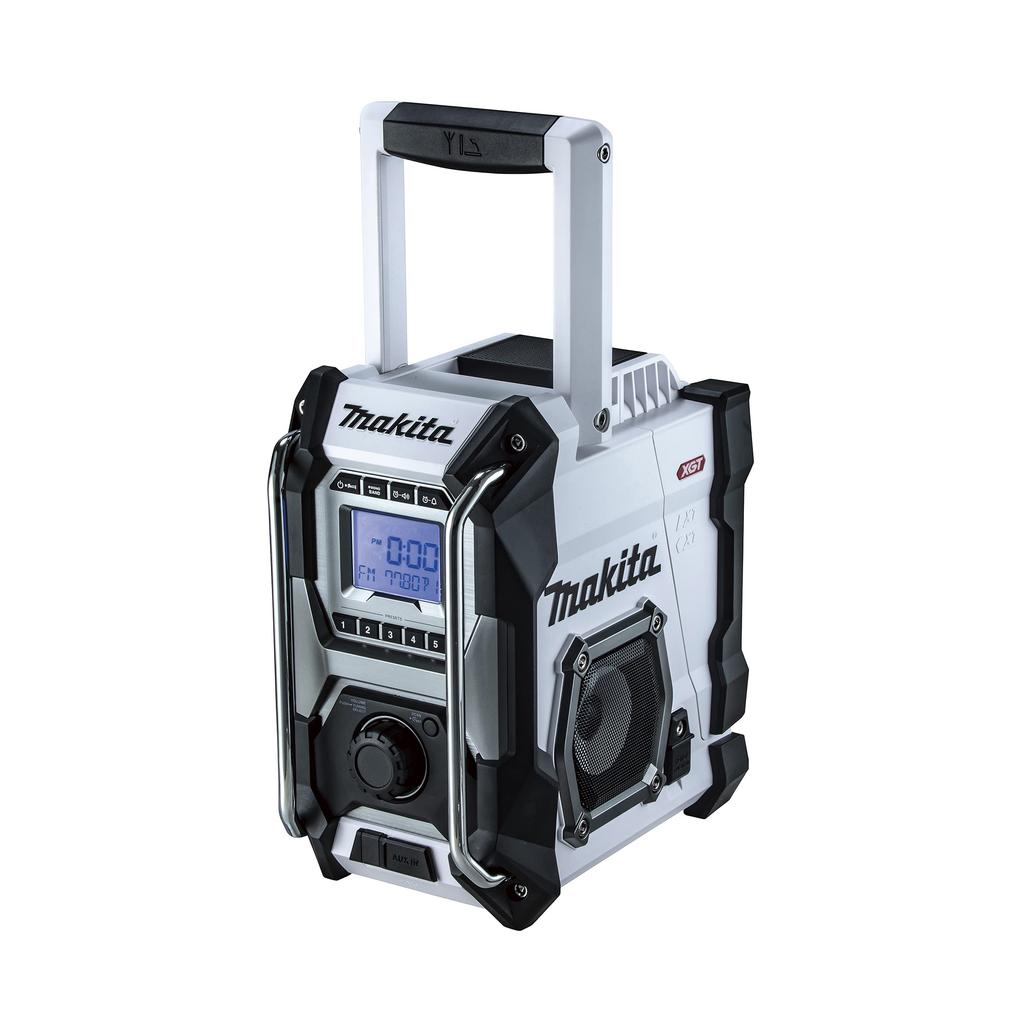 Compatible with 40V max, this simple model features only a radio function. Also compatible with 40V max, 18V lithium-ion batteries, 14.4V batteries, and slide-type 10.8V batteries (excluding light batteries). Also compatible with AC 100V household power (AC adapter included as standard). Loud volume and high-quality stereo playback. Large speakers positioned on the left and right provide loud, high-quality stereo playback.