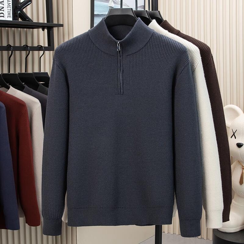 Men's Half-Zip High-Neck Knit Pullover Sweater FXT6809