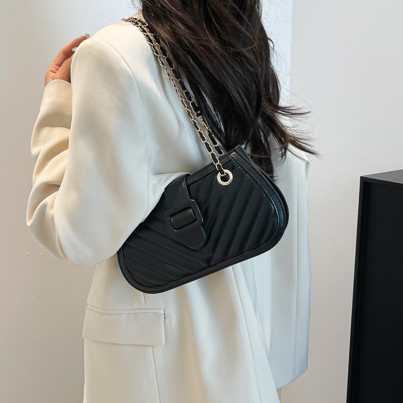 French casual underarm bag women's 2025 spring new diamond chain handbag fashionable texture shoulder bag