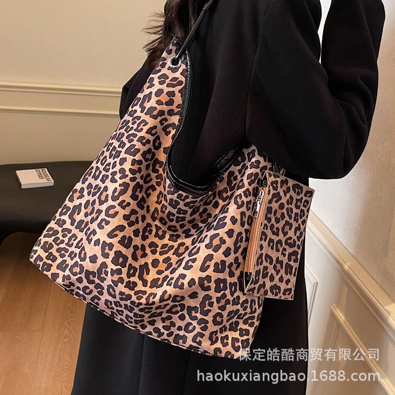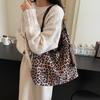 Canvas bag women's large capacity 2025 new autumn and winter leisure leopard print messenger bag versatile class commuter tote bag