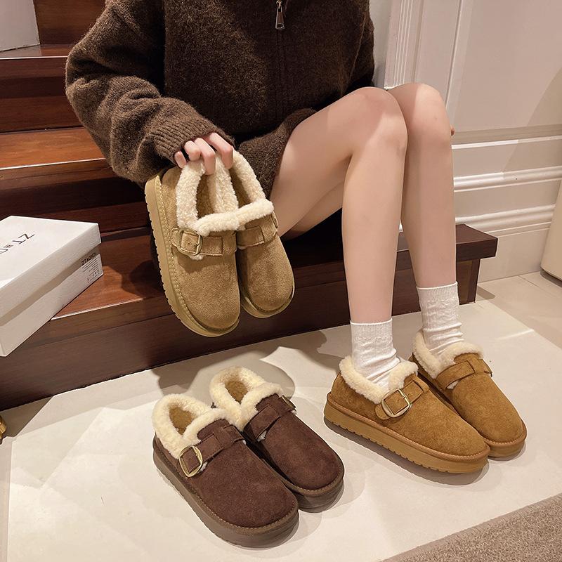Women's Lightweight Thick-Sole Height-Enhancing Winter Insulated Fur-Lined Snow Boots Anti-Slip Cushioned Casual Athletic Cotton Boots Furry Boots