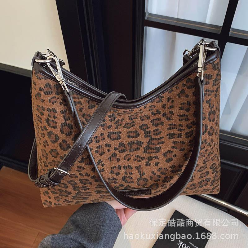 Leopard print bag women's large capacity 2025 new autumn and winter casual shoulder underarm bag versatile work commuter tote bag