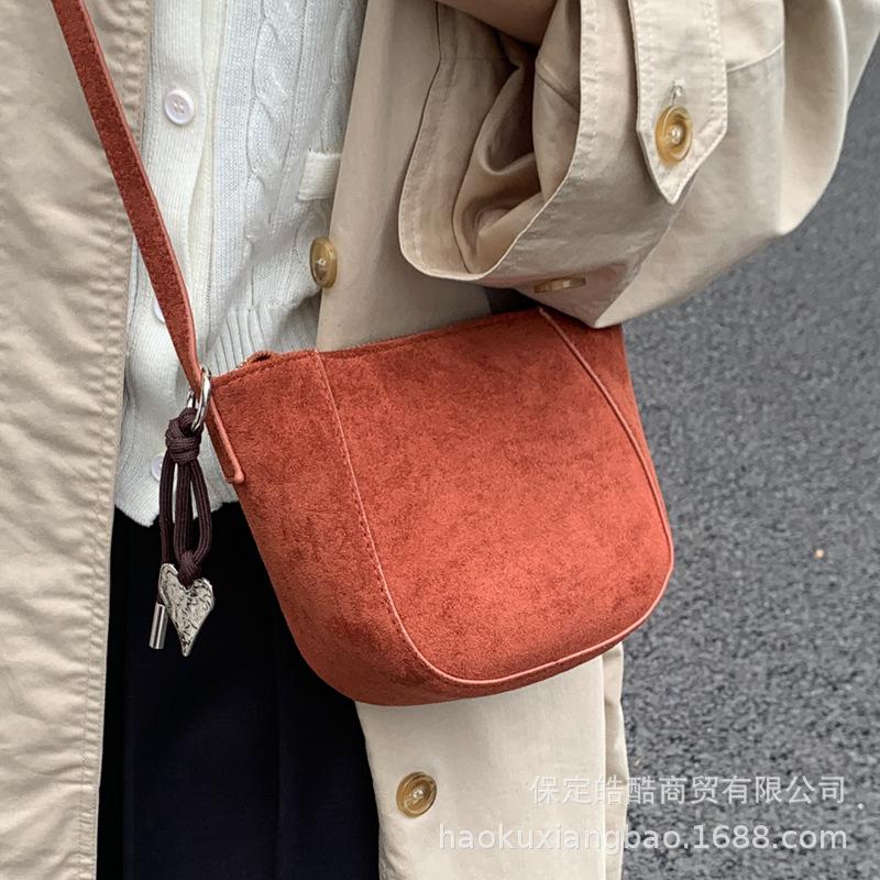 Retro bag women's 2025 new high-end shoulder bag commuter messenger bag versatile bucket bag mobile phone bag