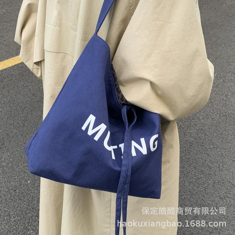 Canvas bag women's large capacity 2025 new autumn and winter niche shoulder messenger bag advanced sense student class tote bag