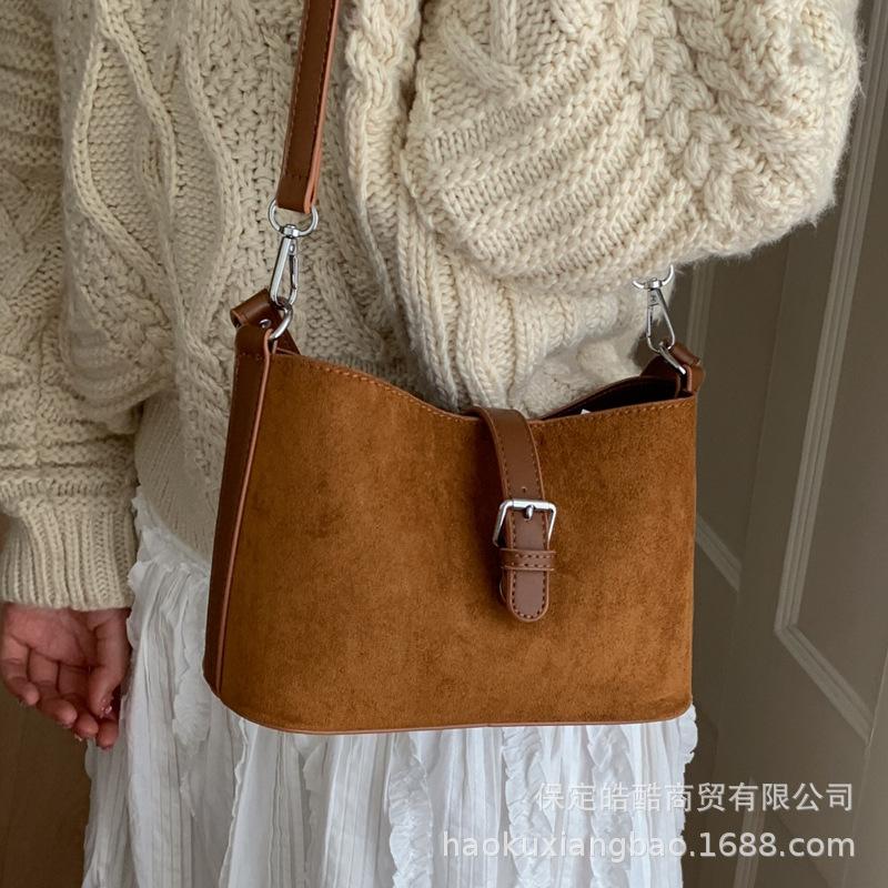 Vintage Maillard brown small bag 2025 new casual versatile women's messenger bag exquisite portable bucket bag