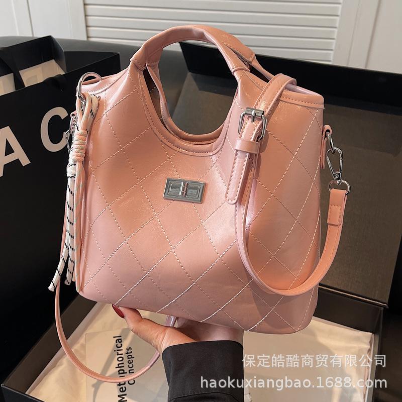 Retro bag women's large capacity 2025 new spring and summer casual shoulder handbag diamond commuter tote bag